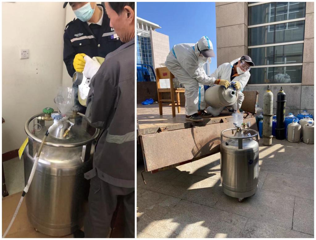 、物理学院的多方协调下,经学校疫情防控应急指挥部批准,形成了“校外公司运输、校内后勤转运、内外人员联动”的添加液氮方案,既高效地完成了设备的日常维护,又高度符合疫情防控的各项规定。截至目前,在校长办公室、后勤处、保卫处、北区综合办、后勤集团、相关教学科研单位的共同努力下,已完成5次设备维护工作。每次液氮添加过程中,驻校园内的杏吧原创