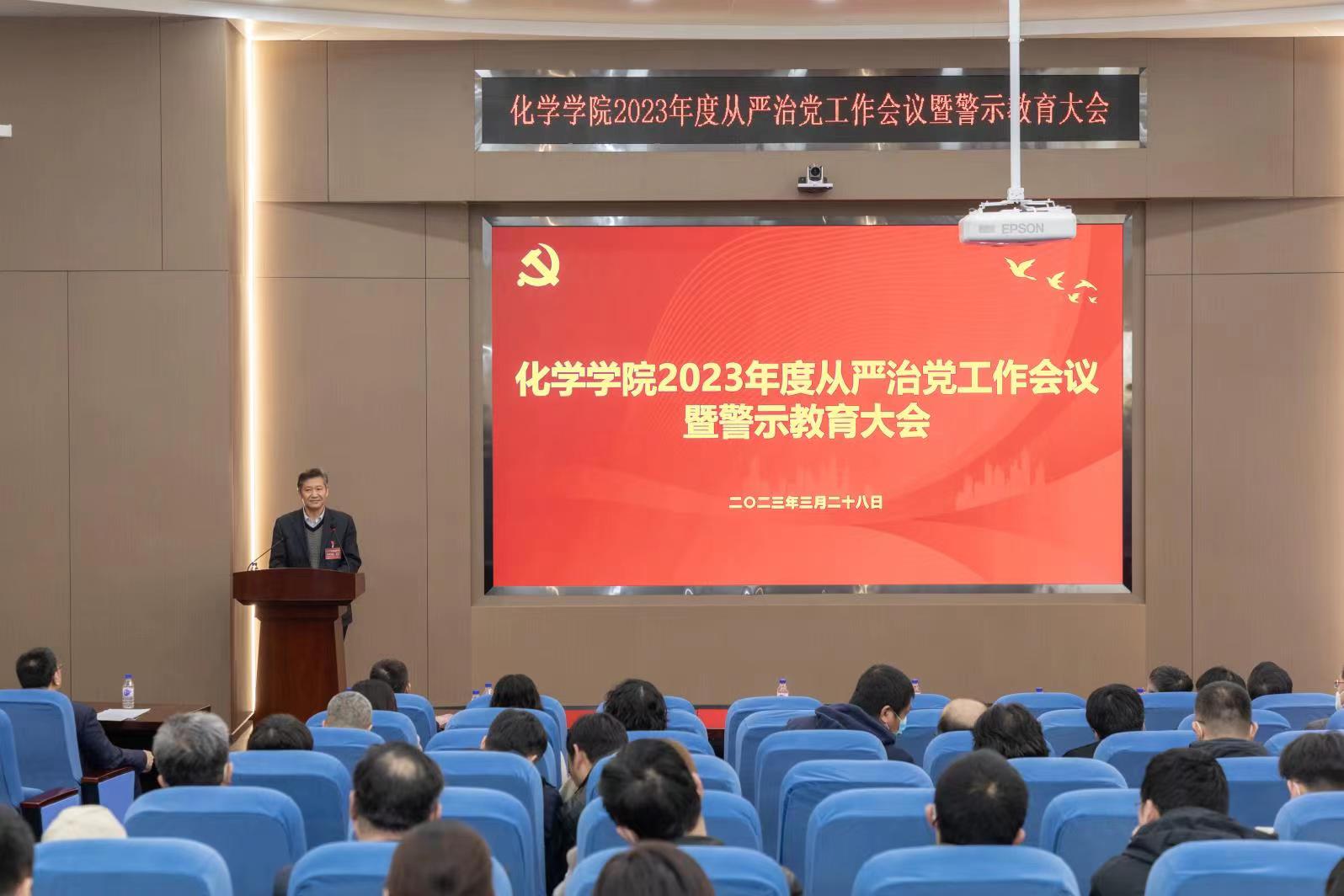 在无机-超分子楼二楼圆形报告厅召开全面从严治党工作会议暨警示教育大会。学杏吧原创