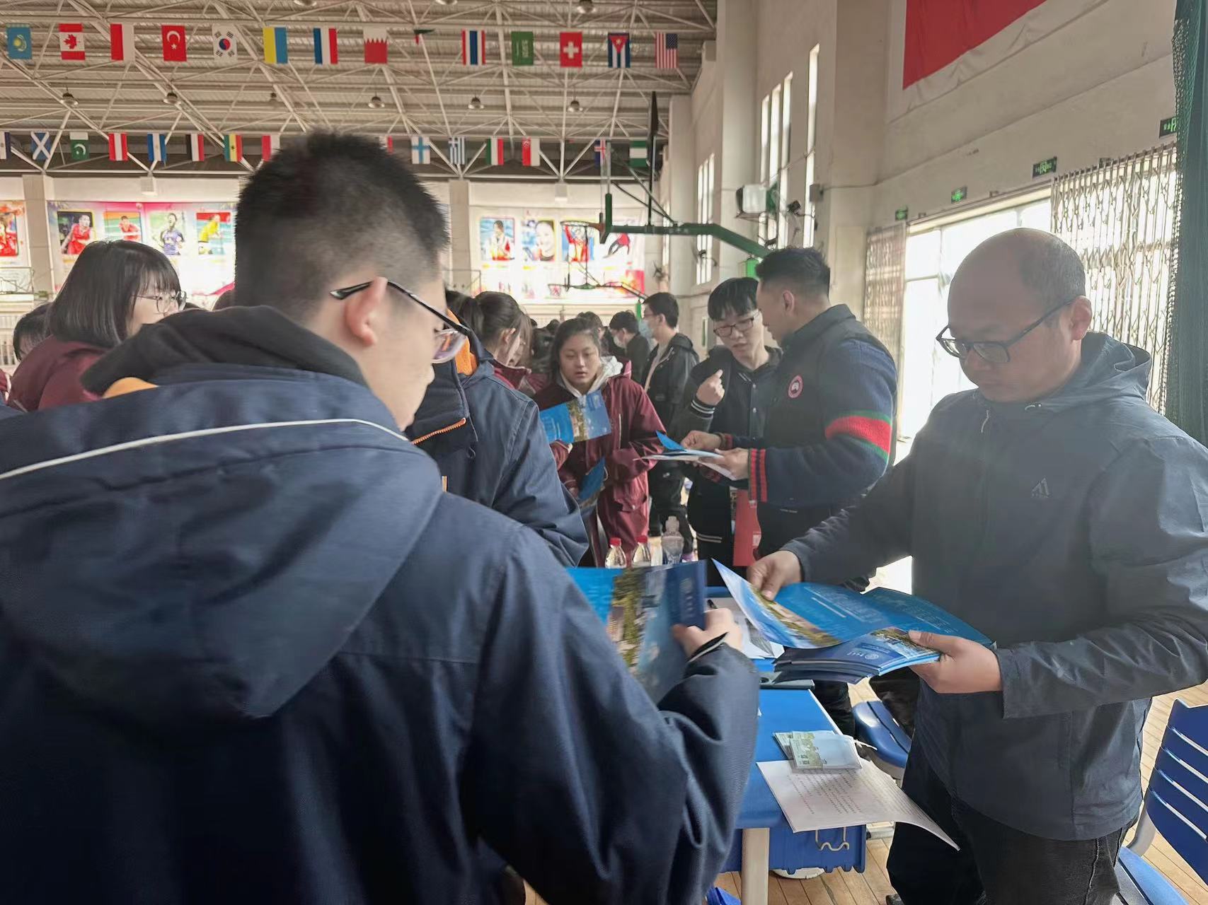 李延春老师为学生发放宣传页