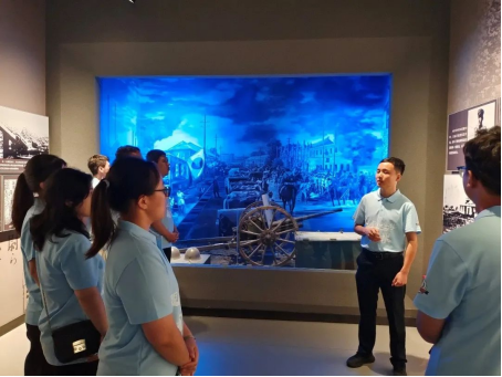 团委负责人刘旭野,结合馆内一幅幅生动的历史图片和一件件真实的文献实物,为同学们讲述了侵华日军第一〇〇部队细菌战罪证史实以及东北抗联英烈的事迹,带领同学们深入了解东北人民抗战史。