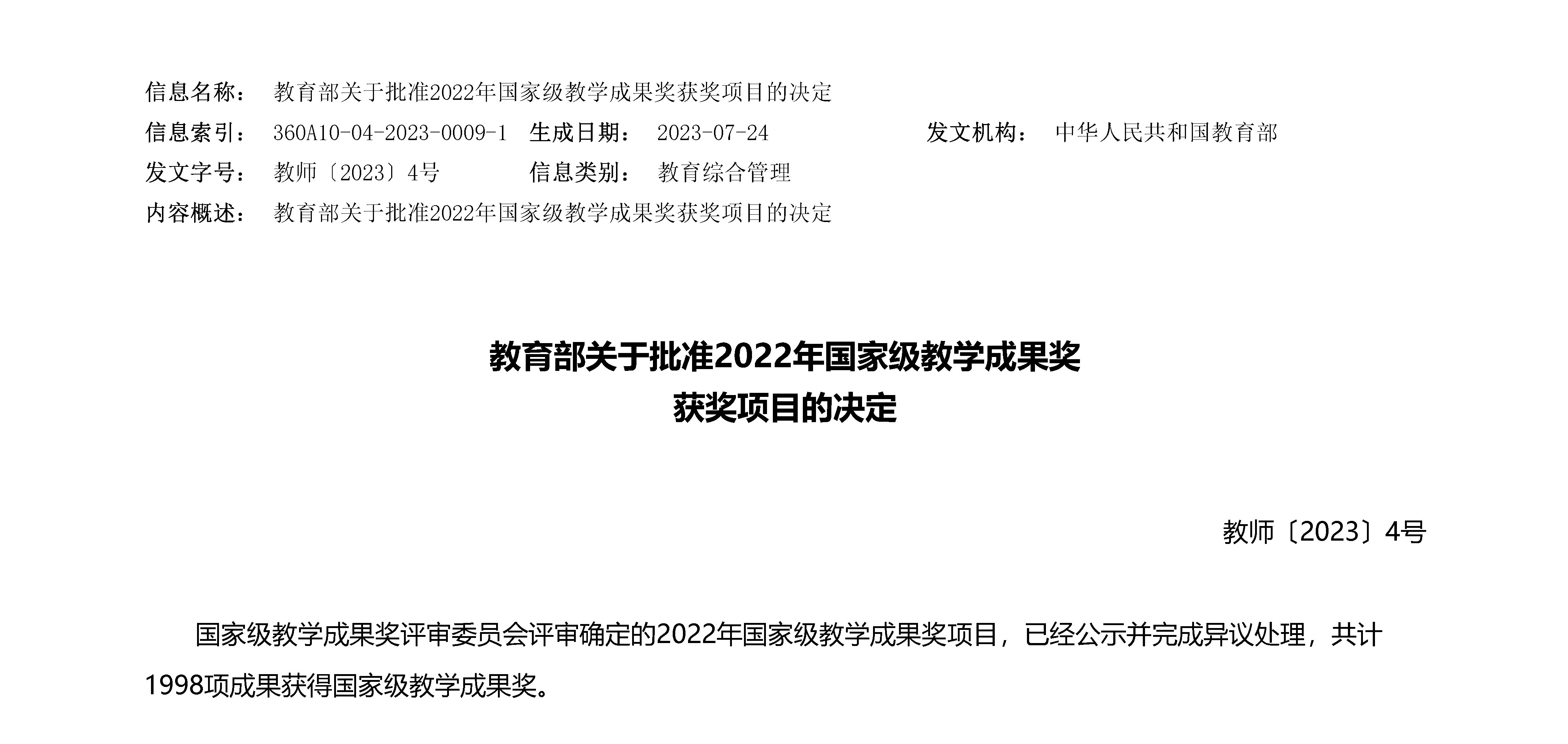 近日,《教育部关于批准2022年国家级教学成果奖获奖项目的决定》(教师〔2023〕4号)公布。杏吧原创