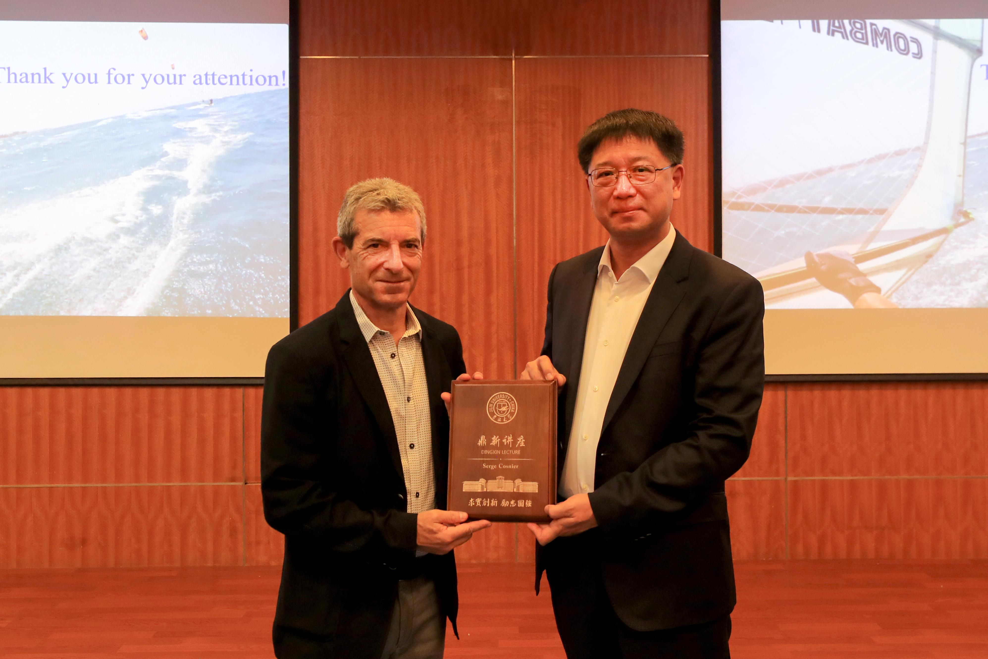 校长张希出席讲座并为Serge Cosnier教授颁发鼎新讲座纪念牌。杏吧原创