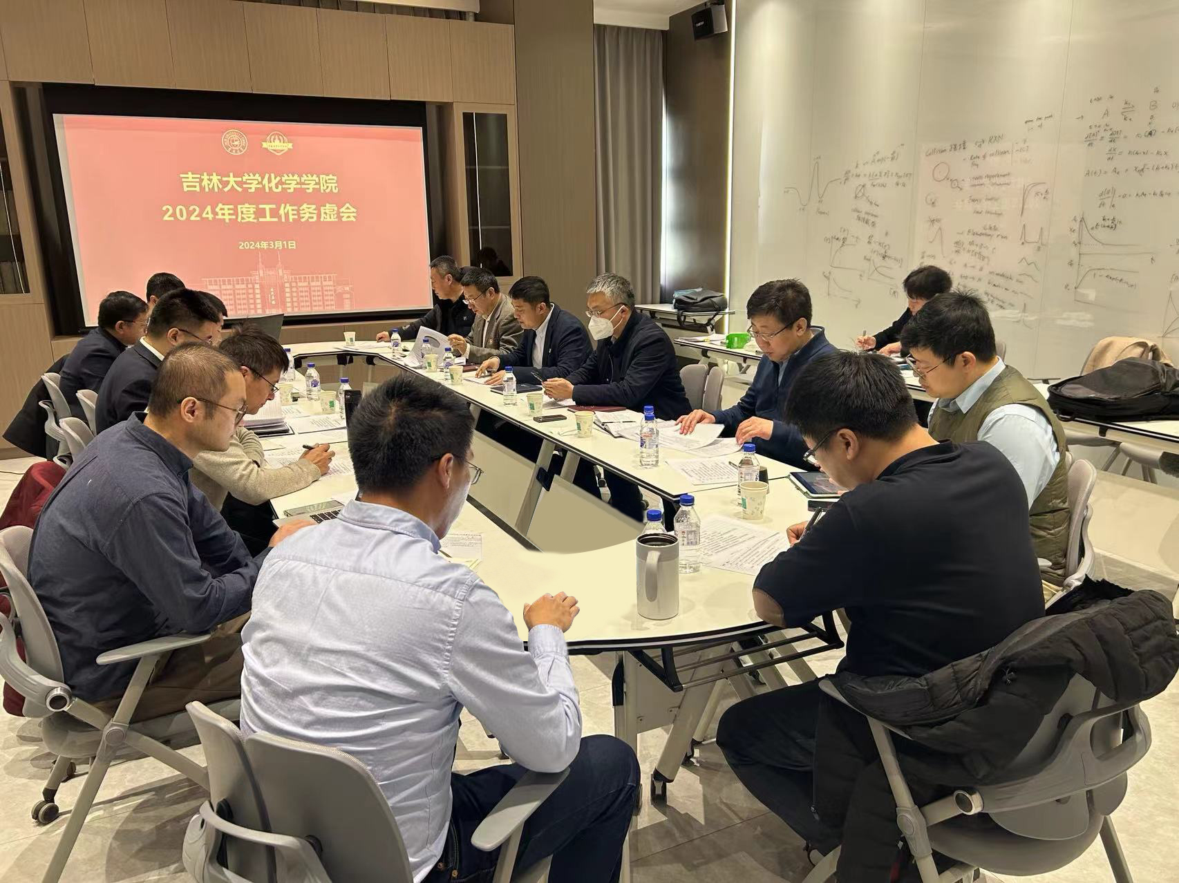 科研再上新台阶的几点思考”为题,围绕重大基础研究成果、国家级科技奖励、技术转移和成果转化、学院公共测试平台等方面提出了系统性的工作设想;副院长李乙以“多措并举进一步提升研究生培养质量”为题,全过程剖析研究生招生、培养、学位授予、就业的工作现状与提质增效方案;行政副院长张贺以“优化学院资源配置,为一流学科建设提供有力的条件保障”为题,直面学科发展面临的资源瓶颈,提出优化资源配置的具体举措;无机合成与制备化学国家重点实验室行政副主任崔曾多以“关于加强和保障实验室学术交流的思考”为题,介绍了国家重点实验室如何从环境设施、服务保障、激励政策等方面促进学术交流;超分子结构与材料国家重点实验室行政副主任梁龙琪以“国家重点实验室的日常管理助力学院发展和一流学科建设”为题,强调了学院发展与科研平台建设相互促进、加强融合的重要性。讨论发言中,大家开门见山、直奔主题,深入思考学院改革发展稳定中出现的新动态、新情况和新问题,紧紧围绕学科专业优化调整、高层次人才队伍建设、科技创新与成果转化、师德学风建设等关键问题,在内涵式发展、监督机制、人才培养、教学评估、科学研究、学术交流、资源配置、平台建设等方面深入研究,为今后工作明确新任务、拓展新思路、提出新举措。院长吕中元对发言逐一进行点评。