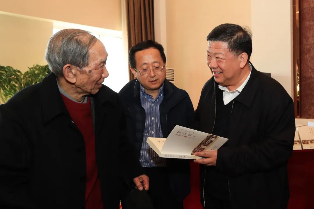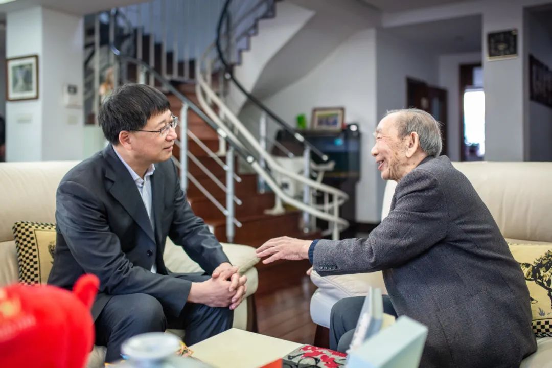 图6 2021年是徐如人九十寿诞。学校举行《景行如人:徐如人传》出版发行仪式。活动现场,姜治莹书记(右一)同徐如人亲切交流