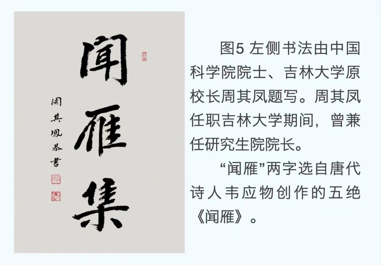 研究生院建院四十周年,看到师生们筹备庆祝活动,我不禁思念起在吉大的求学时光,感怀万千,便想着邀请我的老师、同学和老朋友们,一同著文,追忆往昔,并贺院庆。文章结集成册,命名《闻雁集》,取自唐人旧诗。特请周其凤老校长题字,以期校友们共闻雁鸣,感念母校,常作北归。