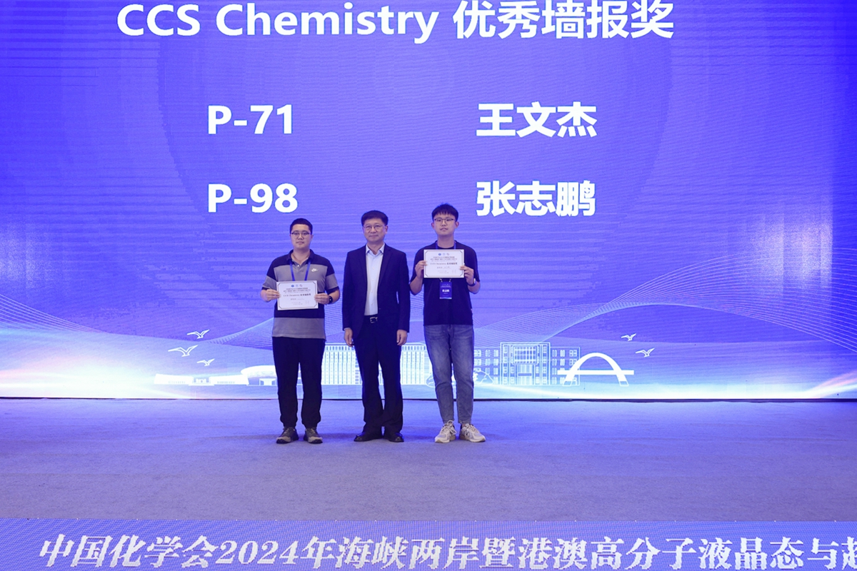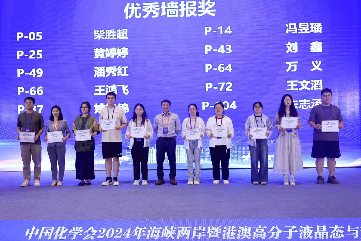 在为期两天的学术交流与研讨中,唐智勇、何荣铭、王钻开、郭绍伟、孙俊奇先后作了题为“纳米自组装多孔膜”“嵌段高分子和手性嵌段高分子自组装”“基于固液特征尺度匹配的超材料设计及应用”“基于软物质材料建构阿基米德镶嵌结构”和“可逆交联聚合物”5个精彩的大会报告。在6个主题论坛中,与会专家学者围绕“液晶高分子的分子工程学”“超分子体系的组装与识别”“自组装体系的理论与表征”“液晶高分子功能材料”“可逆交联与自适应聚合物材料”和“生物超分子组装与功能”作了170个邀请、口头和快闪报告,并展示交流了104份墙报。组委会从中评选出了2个CCS Chemistry优秀墙报,10个会议优秀墙报,以及12个优秀的快闪报告。闭幕式上,张希、何荣铭、孙俊奇分别为获奖代表颁发证书。杏吧原创