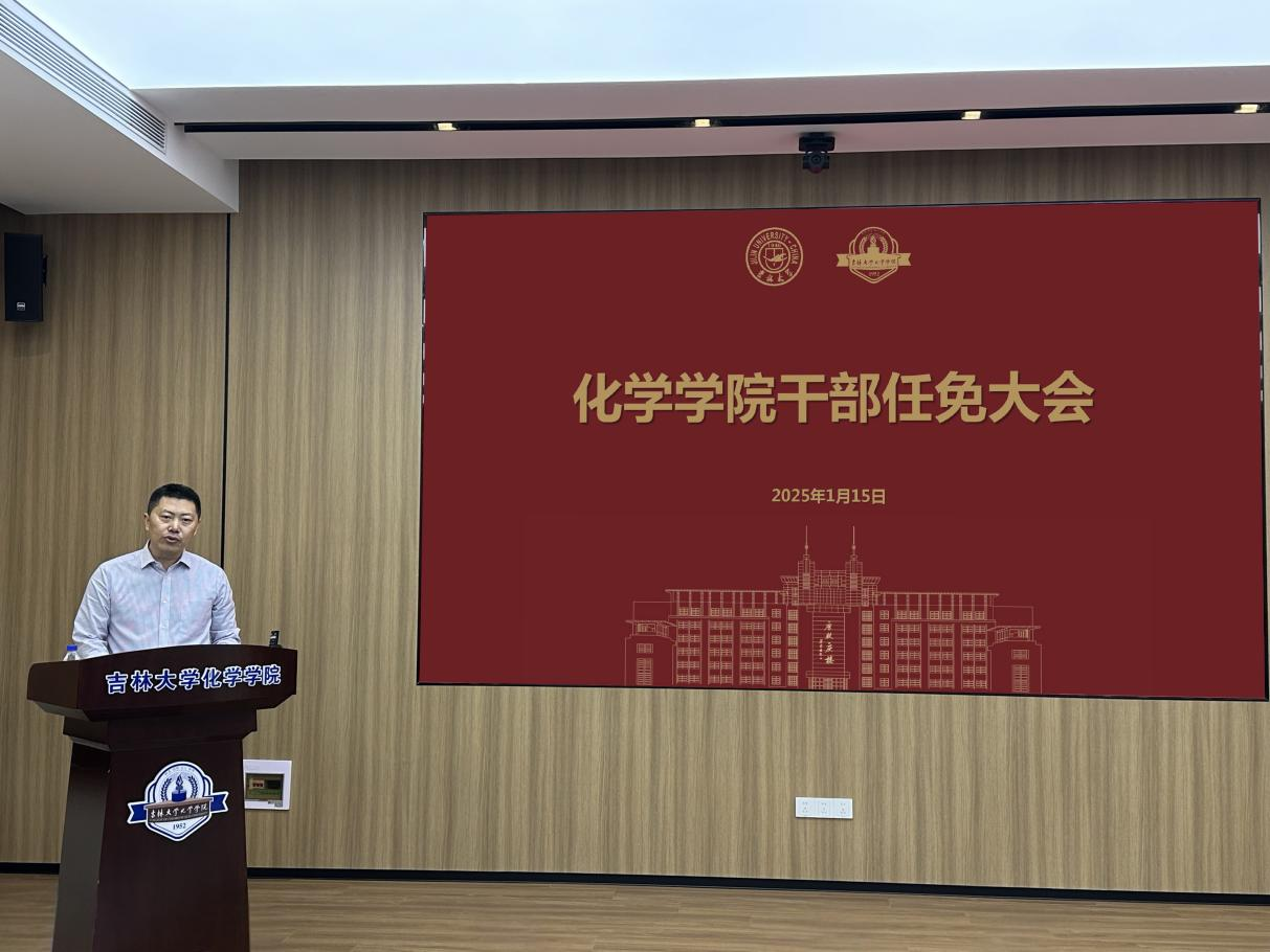班子建设的重要举措。他代表学院感谢离任领导班子成员以及历届领导班子的辛勤付出,为学院发展奠定了坚实的基础。他希望,新任领导班子成员要尽快适应岗位,凝心聚力、锐意进取、继往开来,高质量推进各项工作任务,紧紧围绕化学“双一流”学科建设目标,奋力谱写吉大化学高质量发展新篇章。