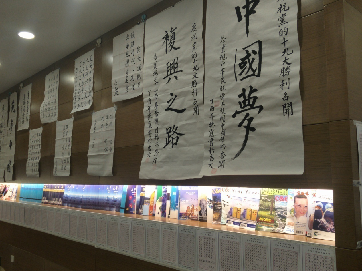 全体师生,作品主题紧密围绕党的“十九大”的胜利召开,师生踊跃报名,积极参与,学院党委书记宁德宽老师带头创作和提交书法作品。经过初选,11月13日至19日,教师组和学生组共有近两百幅优秀的软、硬笔书法及绘画作品在唐敖庆楼杏吧原创