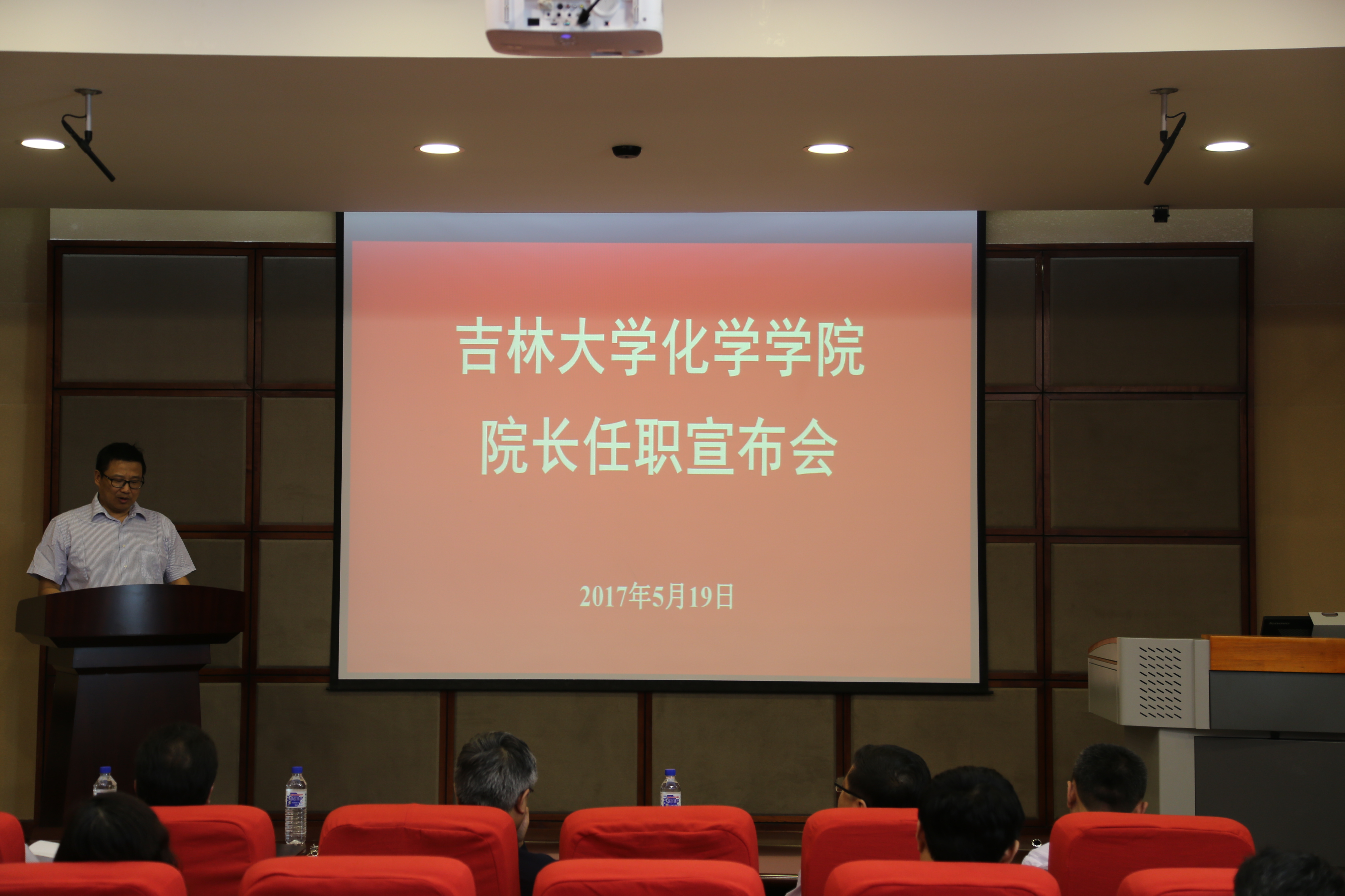 在唐敖庆楼A408召开院长任职宣布会。常务副校长陈岗、组织部副部长张国兴出席会议,学院党政领导班子成员,党委委员,纪委委员,学术委员会、学位委员会和教学委员会主任委员,无机合成与制备化学国家重点实验室、超分子结构与材料国家重点实验室、特种工程塑料教育部工程研究中心负责人,各系所中心主任,教工党支部书记和机关各办公室主任参加了会议。会议由学院党委书记丁世海主持。