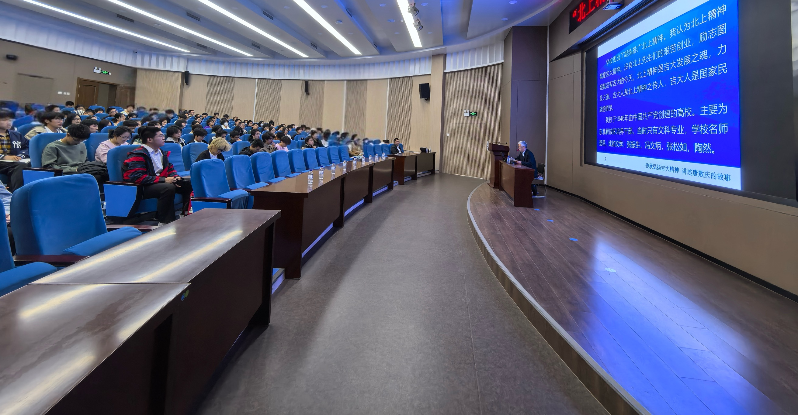 校长唐敖庆先生的点滴逸事,带领同学们重温唐敖庆先生教学、治学的动人故事,以及唐敖庆先生至诚报国、严谨求实的精神。王英老师强调,北上精神就是吉大精神。没有先生们的艰苦创业、励志图强就没有吉大的今天。北上精神是吉大发展之魂、力量之源。吉大人是北上精神之传人,吉大人是国家民族的脊梁。他勉励同学们:要以唐敖庆、匡亚明、李四光、朱光亚、黄大年等为榜样,认真学习专业知识,传承发扬吉大精神,服务国家战略,勇攀科技高峰。