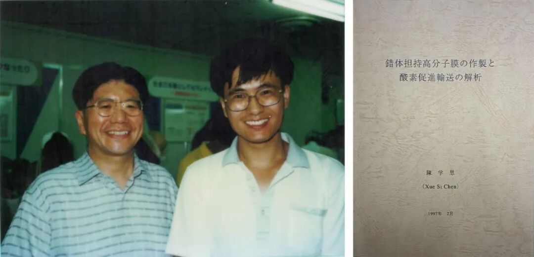 图2 左:1994年,刚到土田教授实验室时与西出老师合影。右:作者博士毕业论文封面
