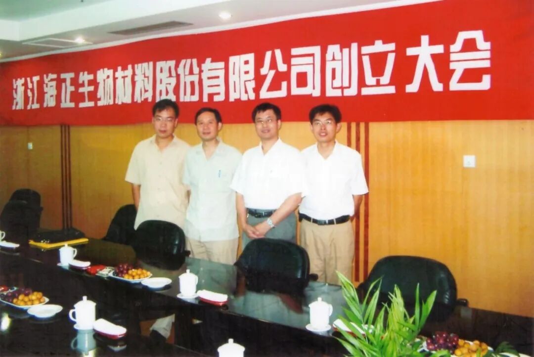 图4 2004年8月,浙江海正生物材料股份有限公司创立大会。左一边新超,左三陈学思