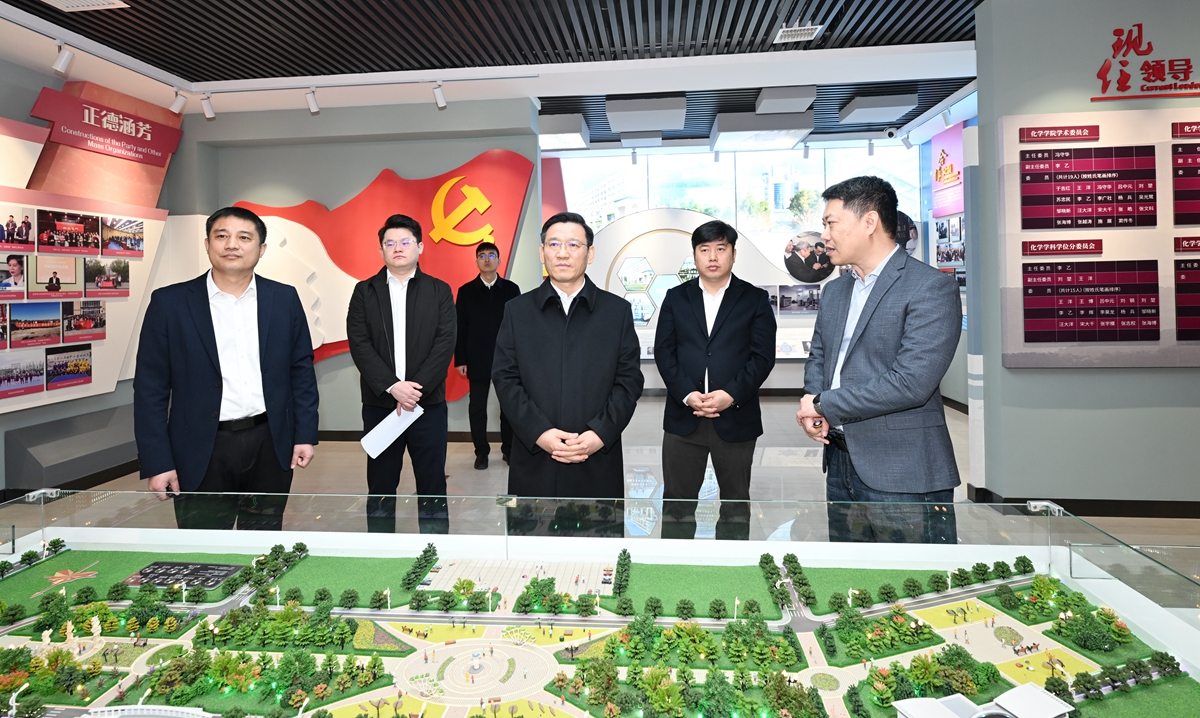 ,田辉实地考察院史馆、含硼有机功能材料实验室、高分子合成化学实验室、功能复合固体能源材料实验室,深入调研化学学科发展建设、科研成果转化、服务地方发展以及党建工作等情况。田辉指出,杏吧原创