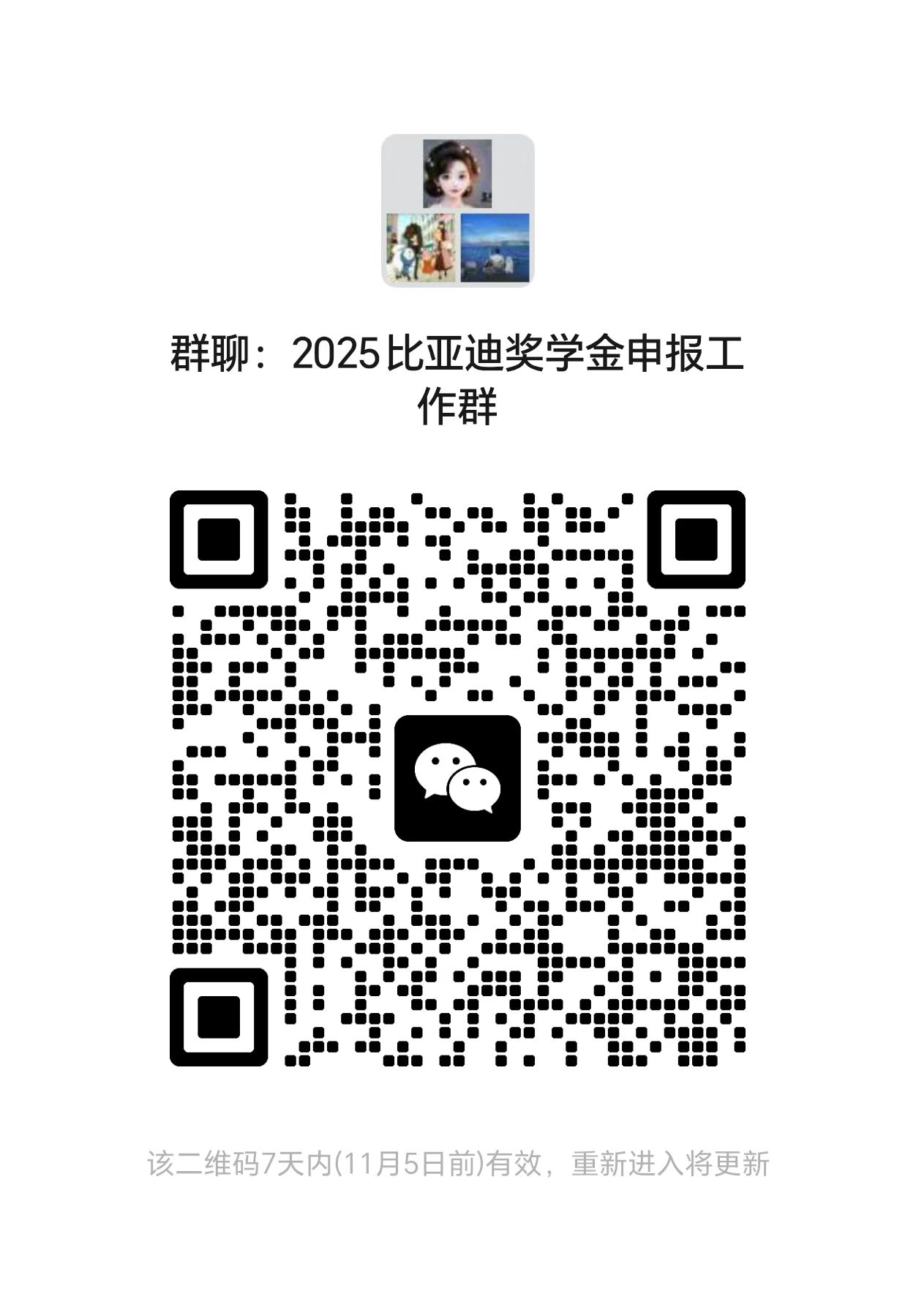 (3)报名研究生扫描二维码加入“2025比亚迪奖学金申报工作群”。