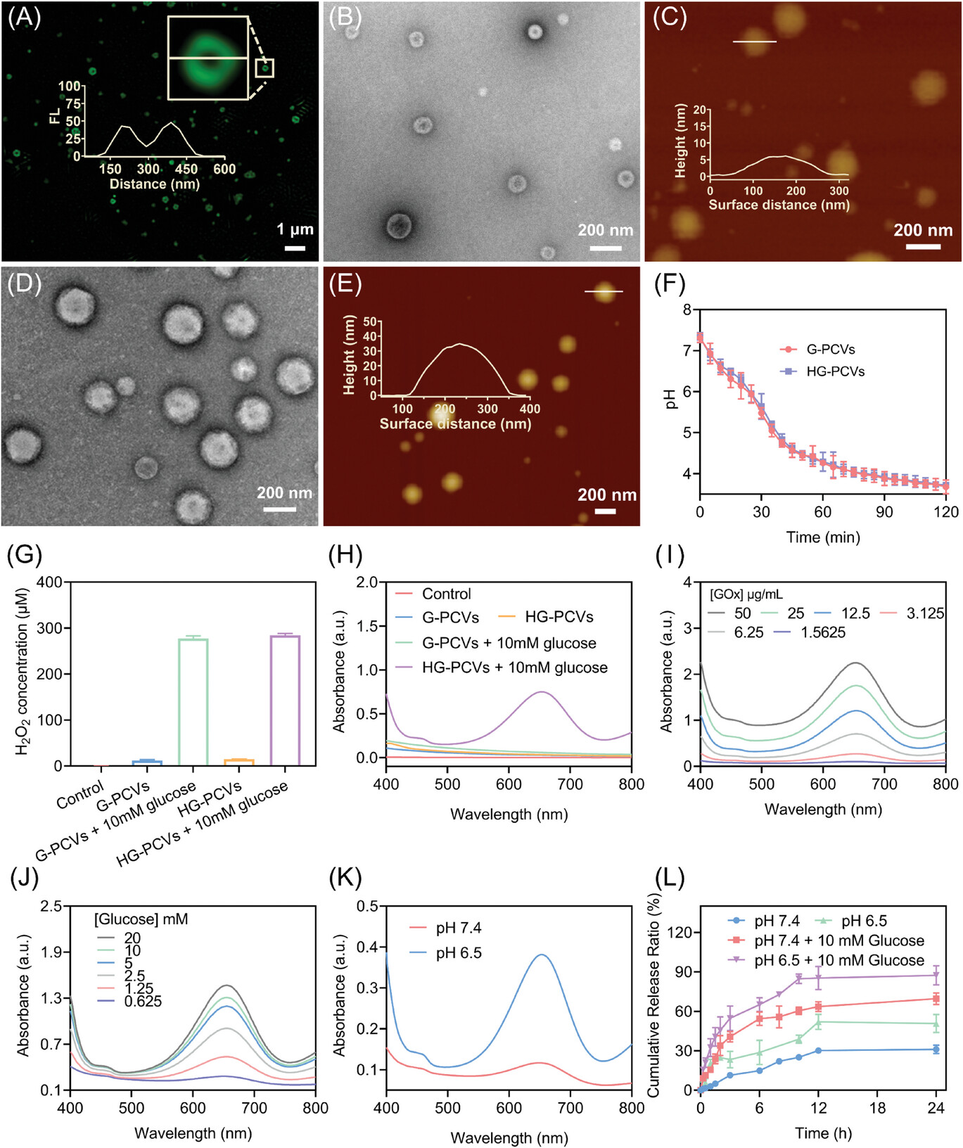 图1.多功能纳米反应器的制备以及pH响应性测试。