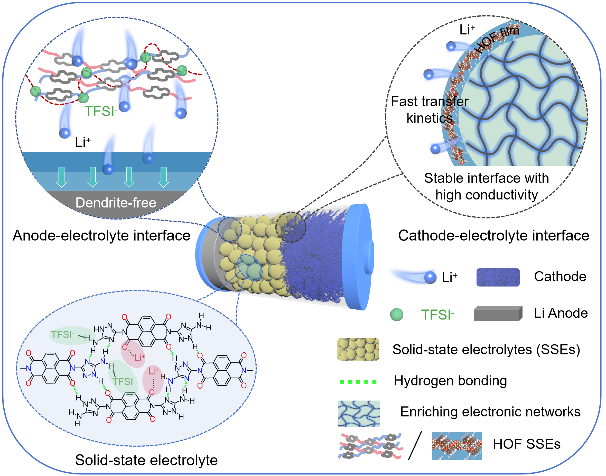 基于氢键有机框架固态电解质的固态锂空气电池构筑示意图。