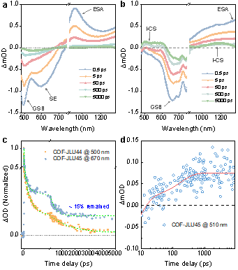 图4. COF-JLUs的瞬态吸收光谱