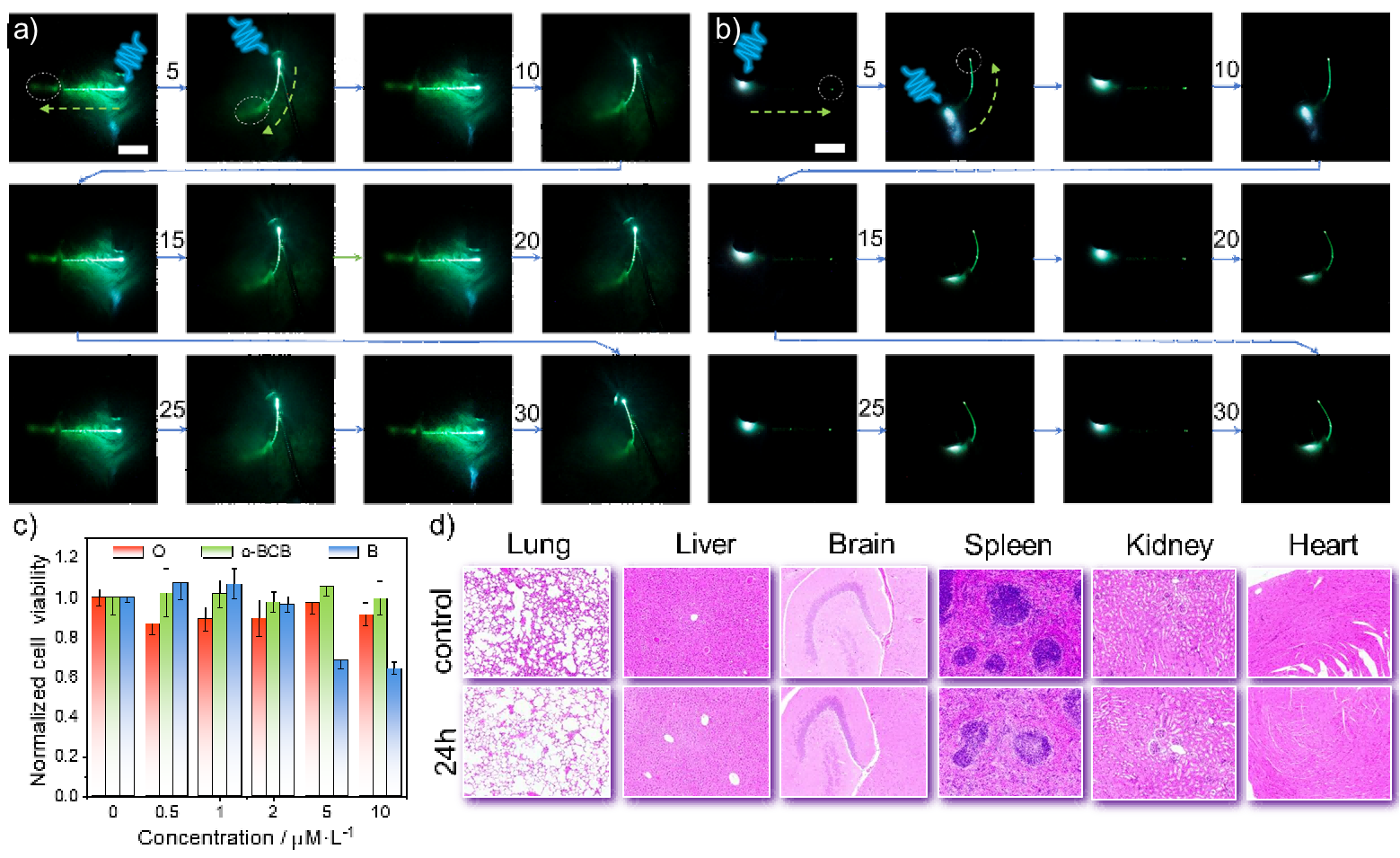 图4.嵌入小鼠皮下的柔性光波导的机械稳定性及其生物毒性评估