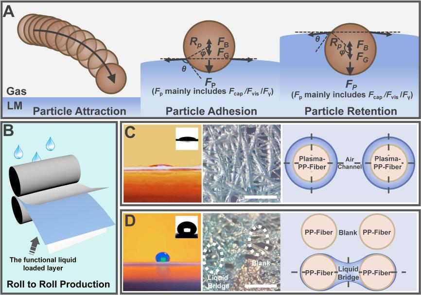 为进一步证明LMS的驱动机制,研究人员选取了具有不同表面张力的功能液体以评估高表面张力效应在颗粒物捕获过程中的重要性(图2,第一步骤)。