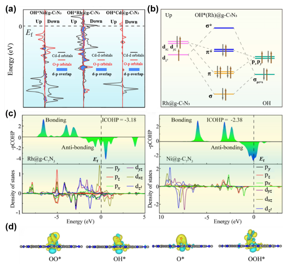 图3 单原子活性位点与中间体的轨道杂化