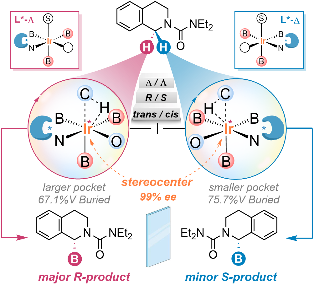 图1.金属中心手性与配体手性协同的立体诱导机制
