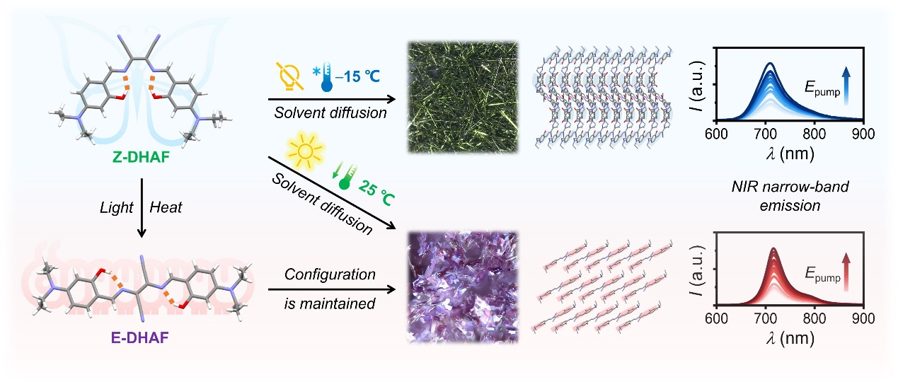 图1.Z/E-DHAF晶体的定制过程及光稳定性研究。