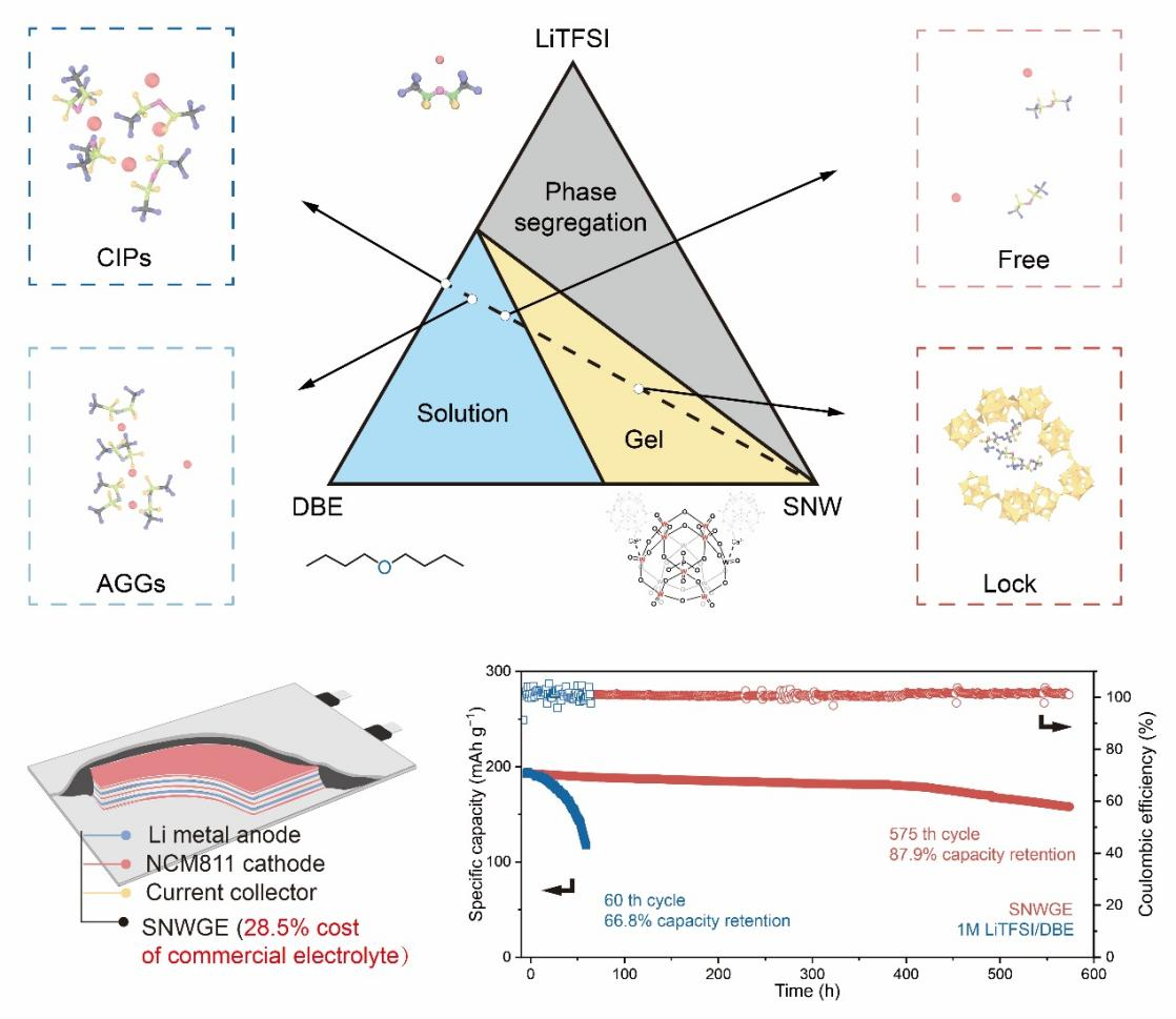 在电动交通、低空经济和大规模储能等领域对动力电池长航时与高能量密度的需求牵引下,锂金属电池被视为突破现有体系能量上限的新技术。然而,由于缺乏同时适配强还原性金属锂负极与高压正极的电解液,其安全性与寿命始终受限。现有电解液体系(高浓盐、含氟溶剂/添加剂、液化气及局部高浓体系等)虽可一定程度提升了电解液的耐压与界面稳定性,但普遍面临成本高、黏度高、低温适配性差等技术瓶颈,致使锂金属电池的工程化应用还面临巨大挑战。