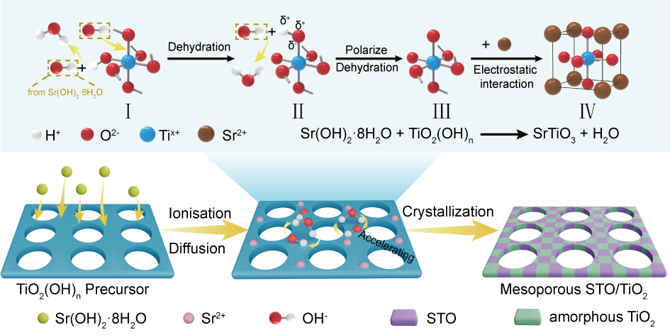 图1.低温固-固界面结晶策略合成STO/TiO2示意图。