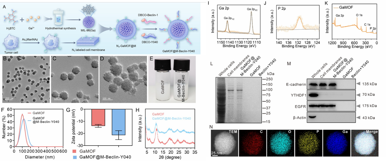 图2. GaMOF@M-Beclin-Y040的合成与表征。