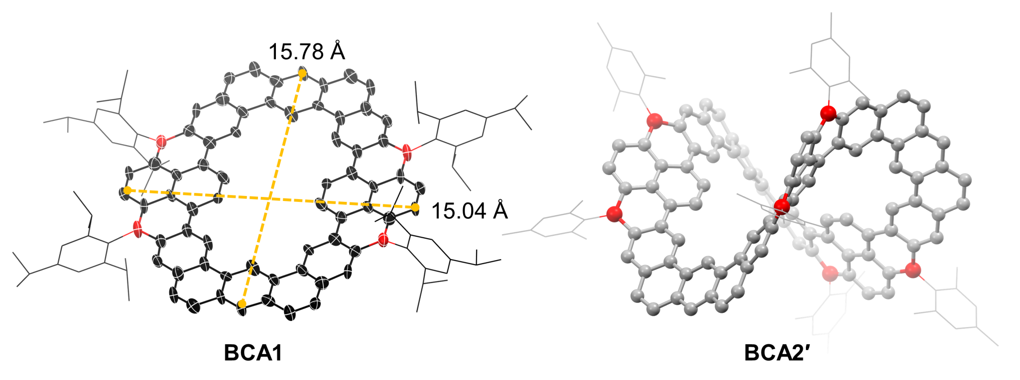 图2.硼杂环带分子碳的单晶/优化结构