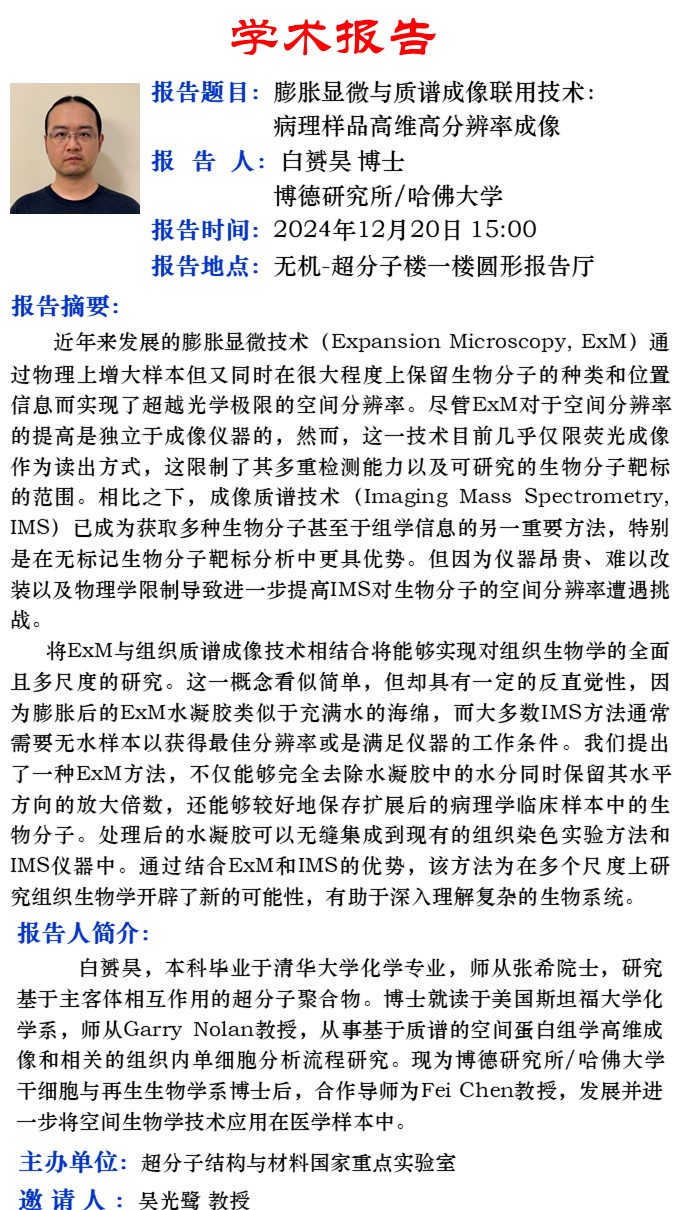 膨胀显微与质谱成像联用技术:病理样品高维高分辨率成像
