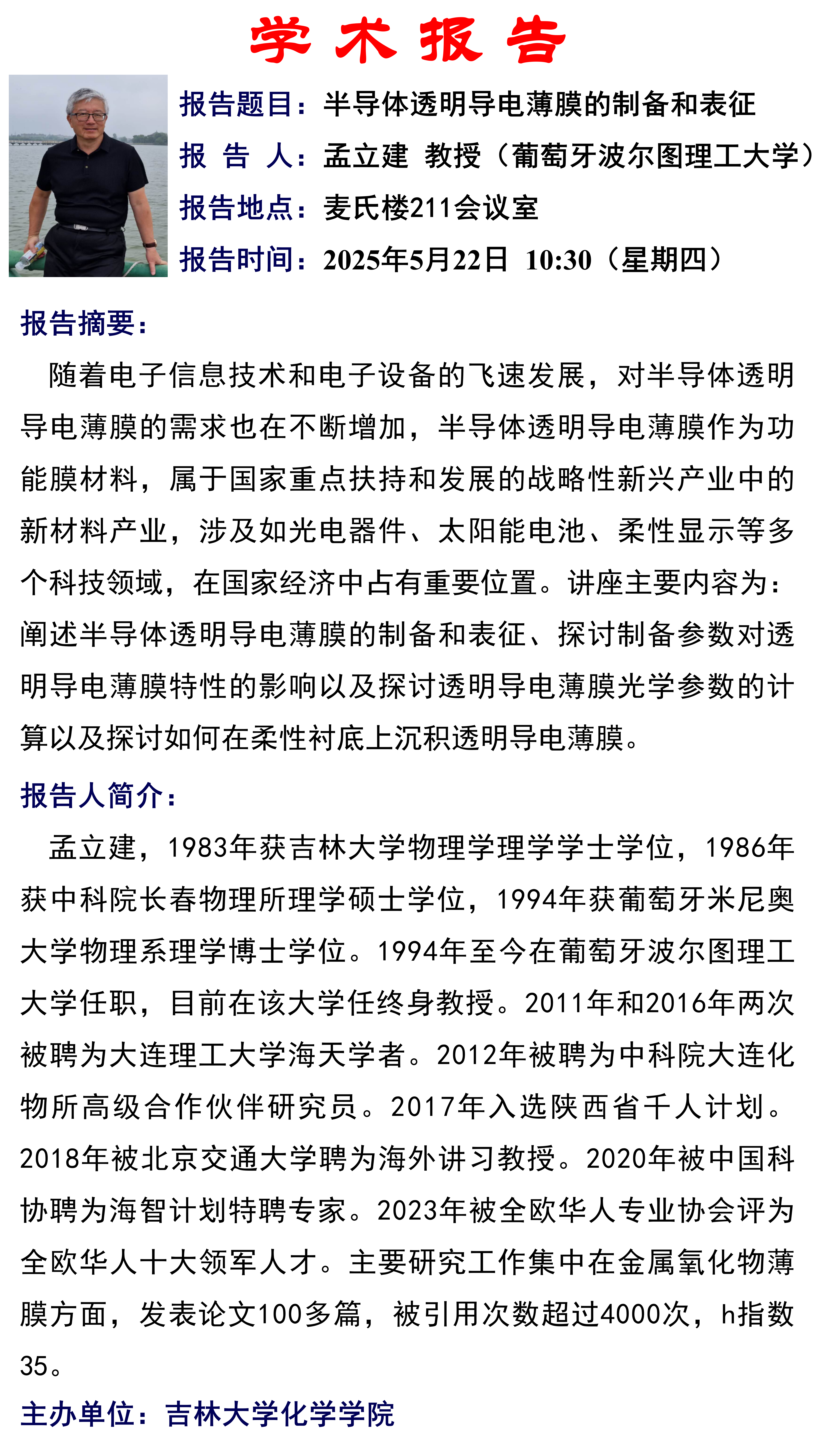 学术报告名称