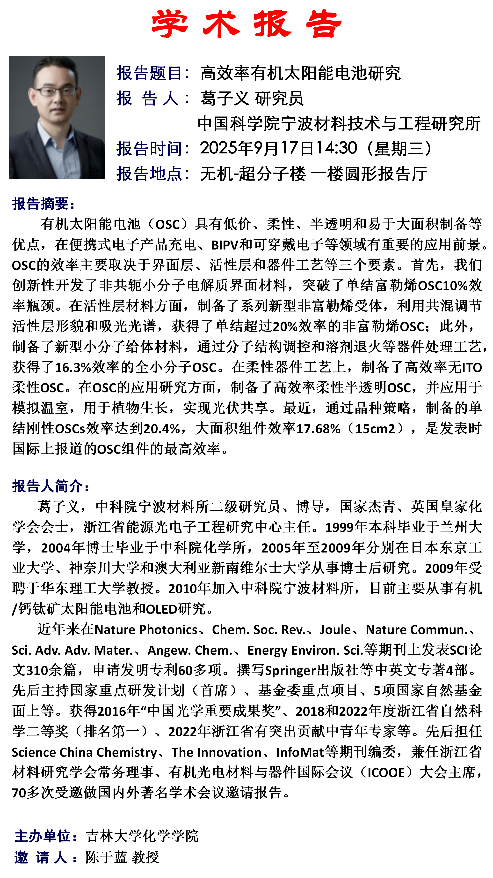 学术报告名称