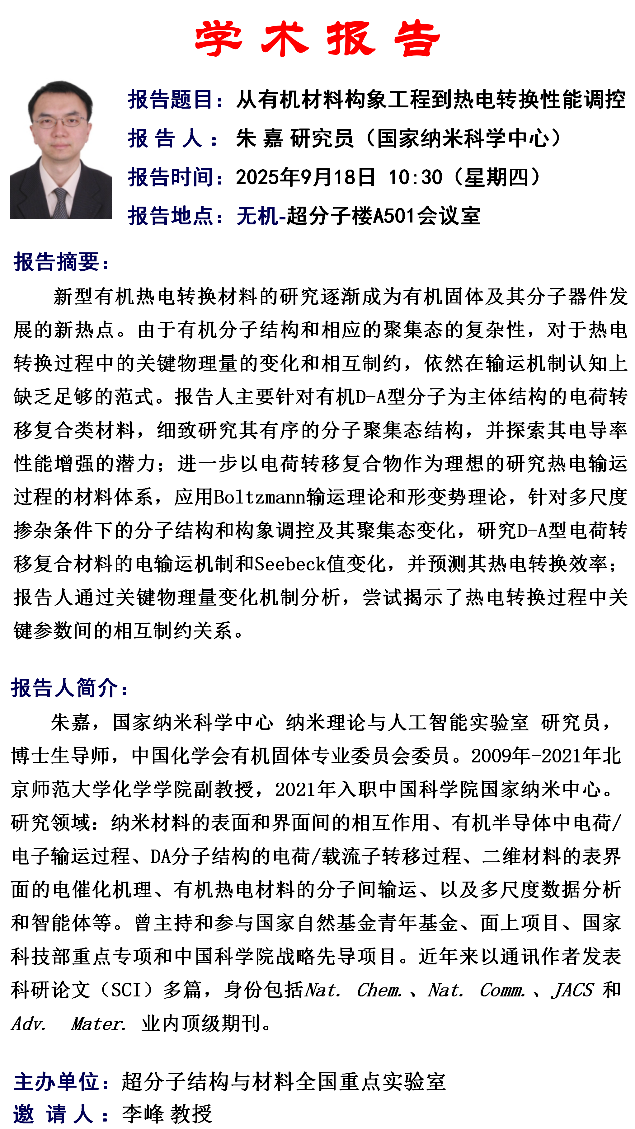 中心校区 无机-超分子楼A501会议室
