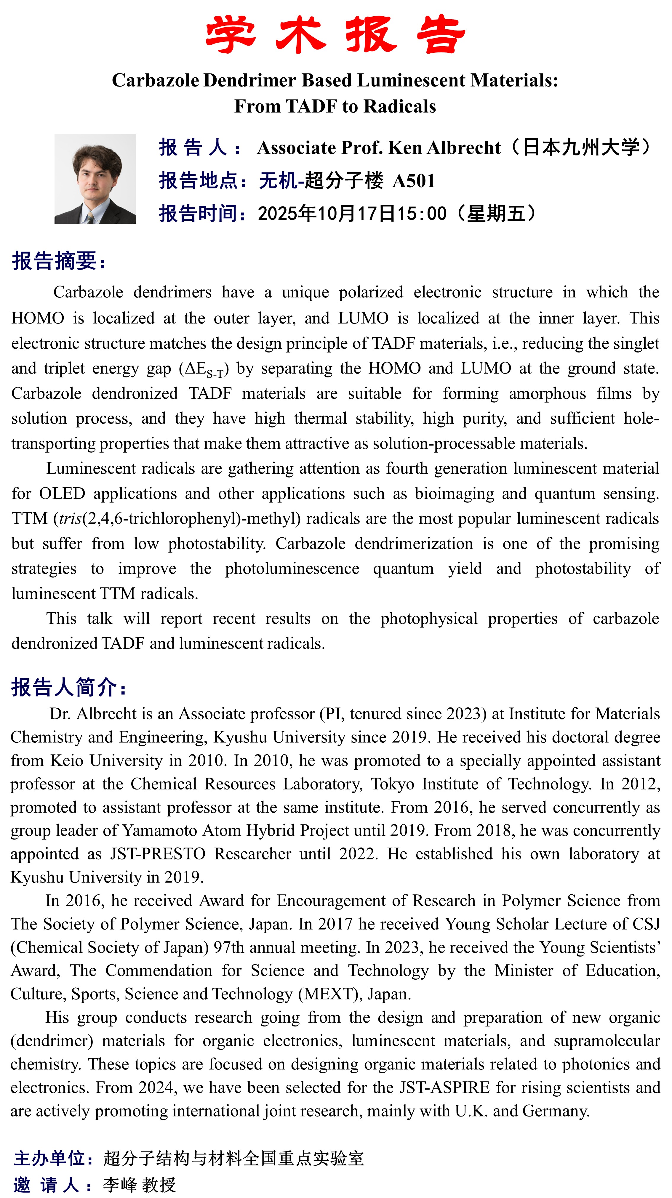 中心校区 无机-超分子楼 A501 会议室