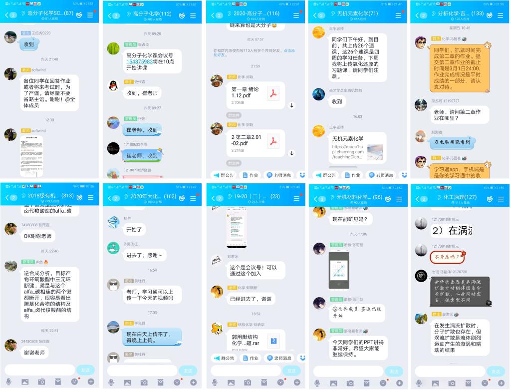 “无机化学II”采用基于自建的在线课程模式开展教学,除为我院240余名学生开课的同时,还面向包括武汉大学、北京航空大学等学校在内的6000余名学习者的在线学习。“结构化学”为直播模式授课,类似课程9门。该课程此次升级近些年开发并持续建设的在线电子化模型系统,让校外学生也能使用该系统,有利于提升在线教学效果,并为今后全国范围内更大规模的推广与使用奠定了基础。以“有机化学”为代表的24门课程,依托数字资源结合“线上自主学习+即时深度互动”的教学模式进行授课。课程团队分工合作、主讲教师共同制作视频,并与国外高水平有机教学团队合作、开放线上教学资源。此外,多名教师全时段利用QQ群,积极参于学生的互动交流,解答问题。上述三种模式典型课程案例各有特色,学生反应效果好。目前这三个典型案例已通过微信群、学院主页进行了推送。具体内容可参见学校主页教学信息栏2月28日、3月2日和3月4日报道。