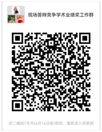 请申报答辩的同学请于6月10日20点前扫码加入微信群,6月11日上午10点前进行群内“拟申请奖学金等级”小程序报名。答辩时间每人5分钟,初步定于6月12日进行腾讯会议现场答辨(具体时间和腾讯会议号在现场答辩微信群内发布)。