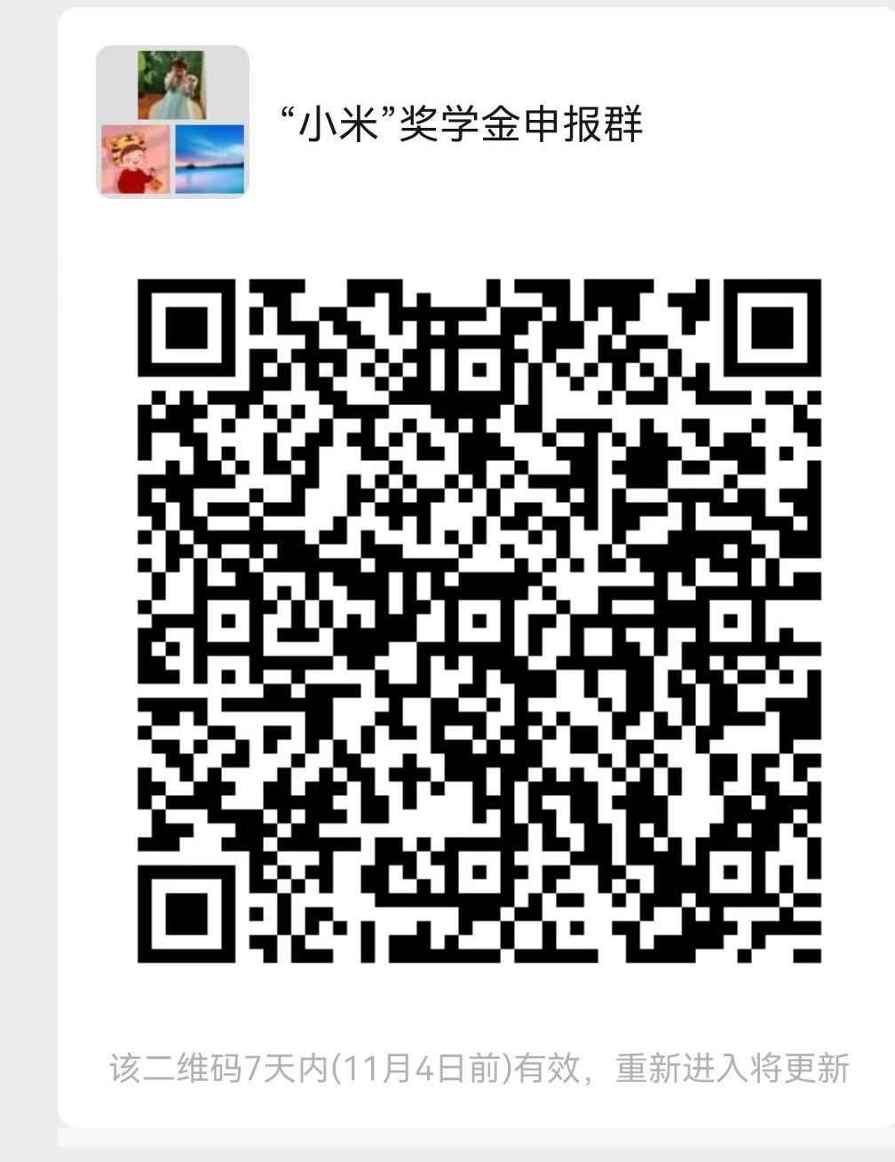 申报人于20221030日(周日)前将以下材料统一发送至[email protected]:文件名:小米奖学金+姓名,同时扫码进群;