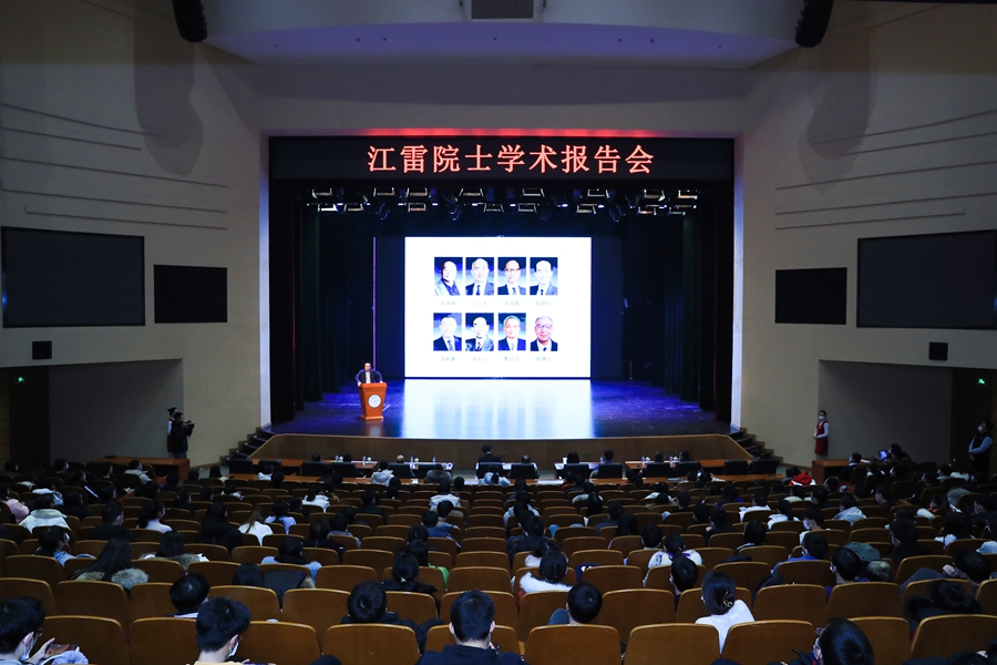 仪式结束后,江雷院士结合求学工作经历,分享了自己的教育理念作为捐赠感言,并以“创新科研选题的三个层次和八个方向”为题作学术报告。江雷提出科学研究的目的是通过科学改变生活,他引用了毛泽东提出的“自然界是不断发展的”“人类总得不断地总结经验,有所发现,有所发明,有所创造……”的科学发展思想,提出原创科研选题的三个层次,分享了“改写教科书”“领域遗留挑战”“总结普适规律”“研制先进仪器”“研发关键技术”“重视偶然发现”“应用全新理论”以及“生命启发科研”的原创科研选题的八个方向。