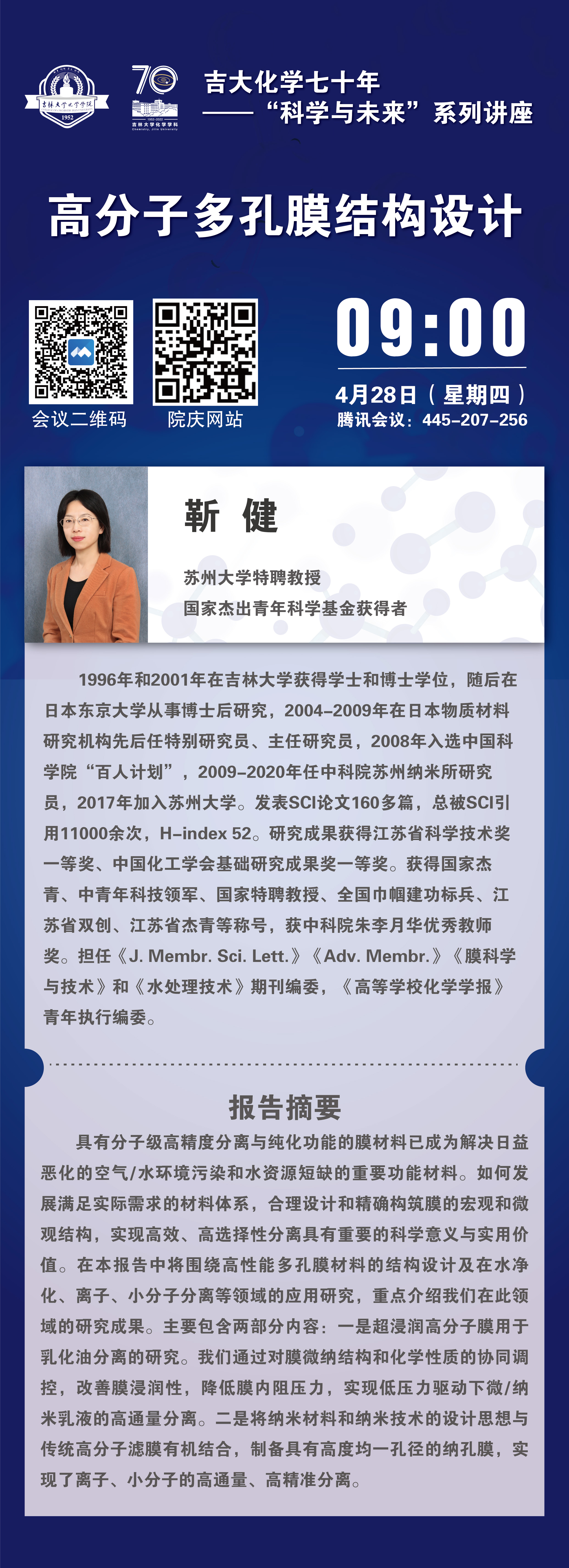 吉大化学70年院庆系列活动——科学与未来系列讲座:高分子多孔膜结构设计