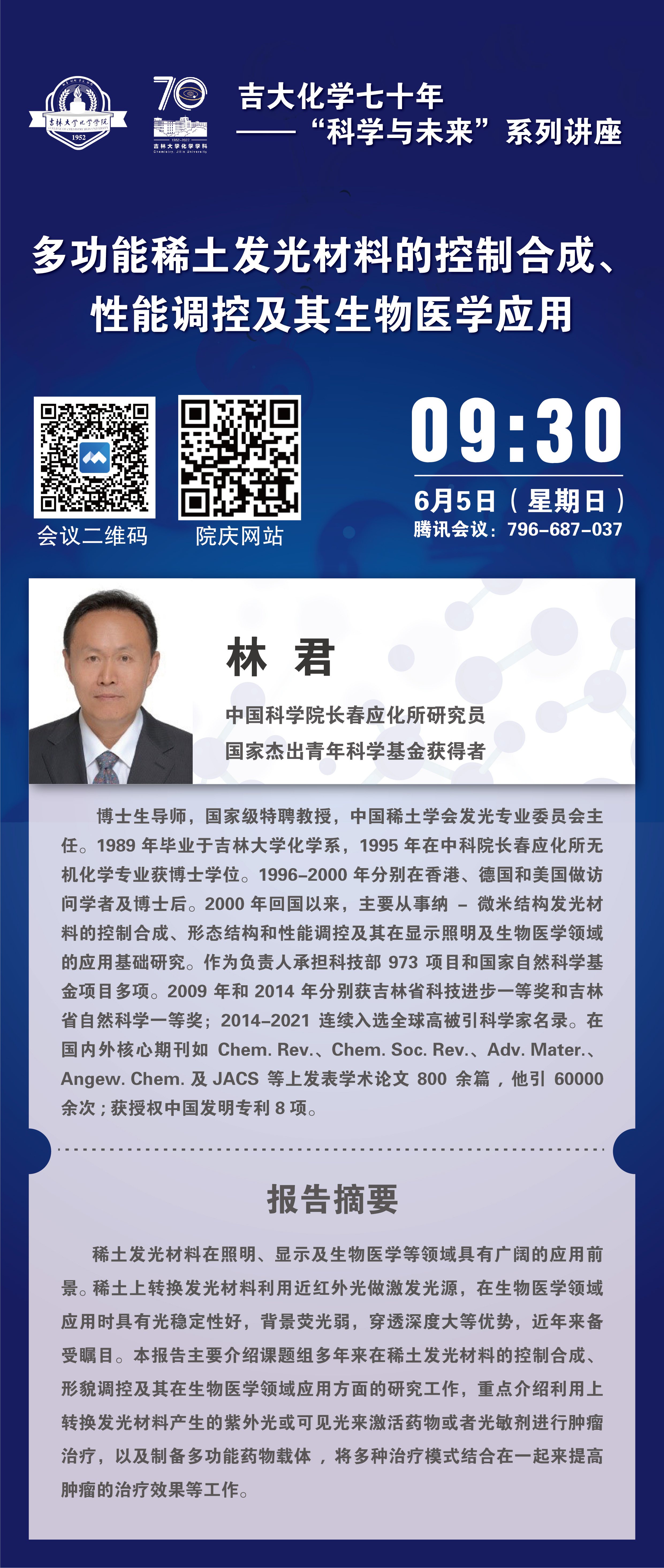 吉大化学70年院庆系列活动——科学与未来系列讲座:多功能稀土发光材料的控制合成、性能调控及其生物医学应用