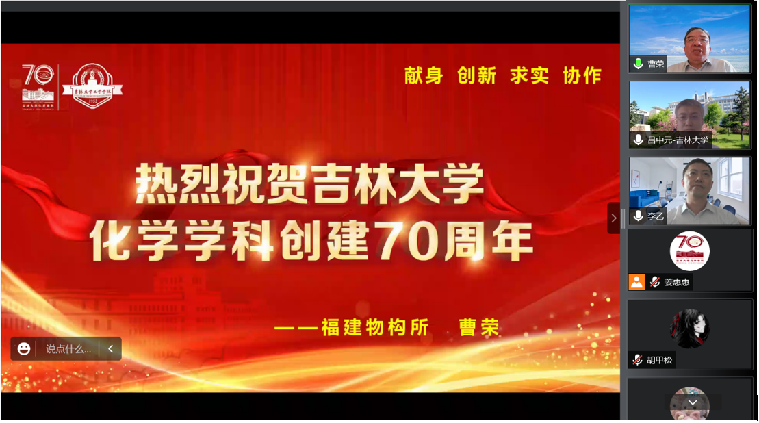 、无机合成与制备化学国家重点实验室、超分子结构与材料国家重点实验室等单位负责人参加讲座,院内外200余名师生在线收看。
