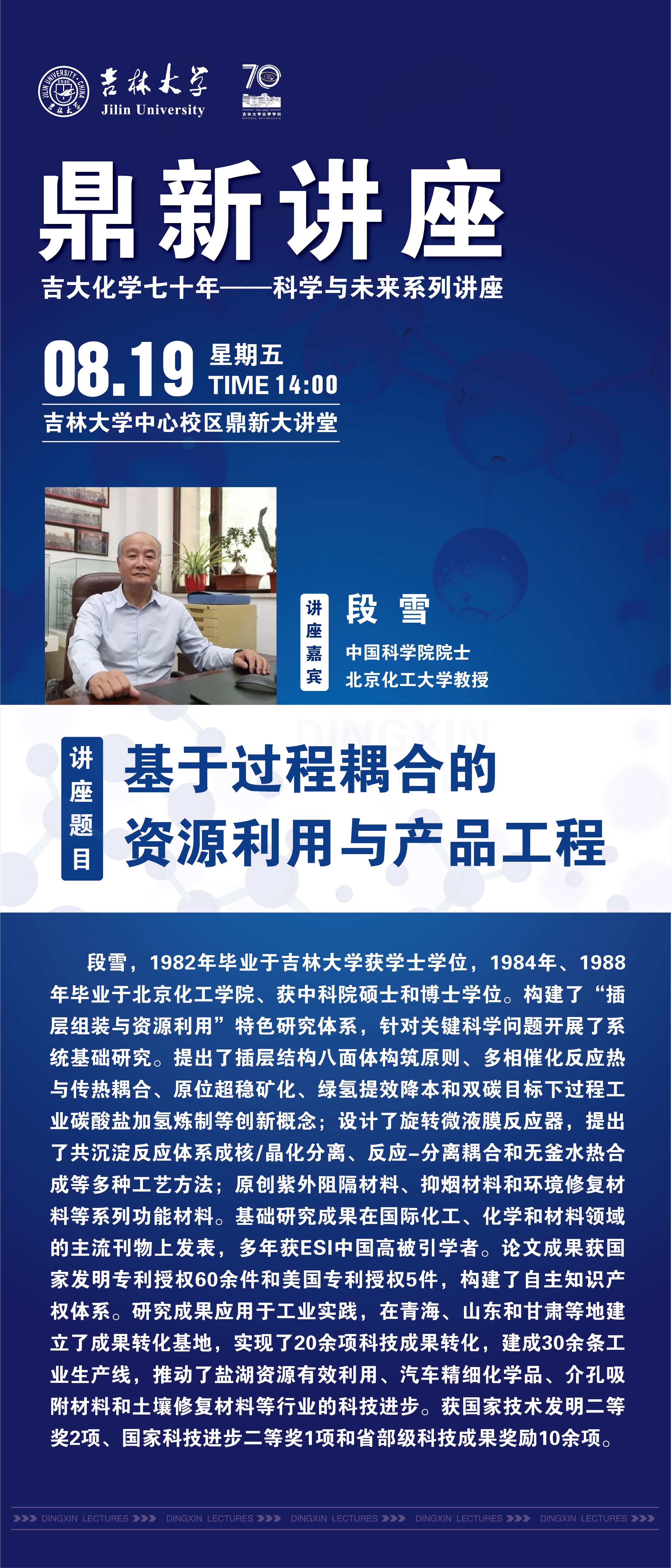 吉大化学70年院庆系列活动——科学与未来系列讲座:基于过程耦合的资源利用与产品工程