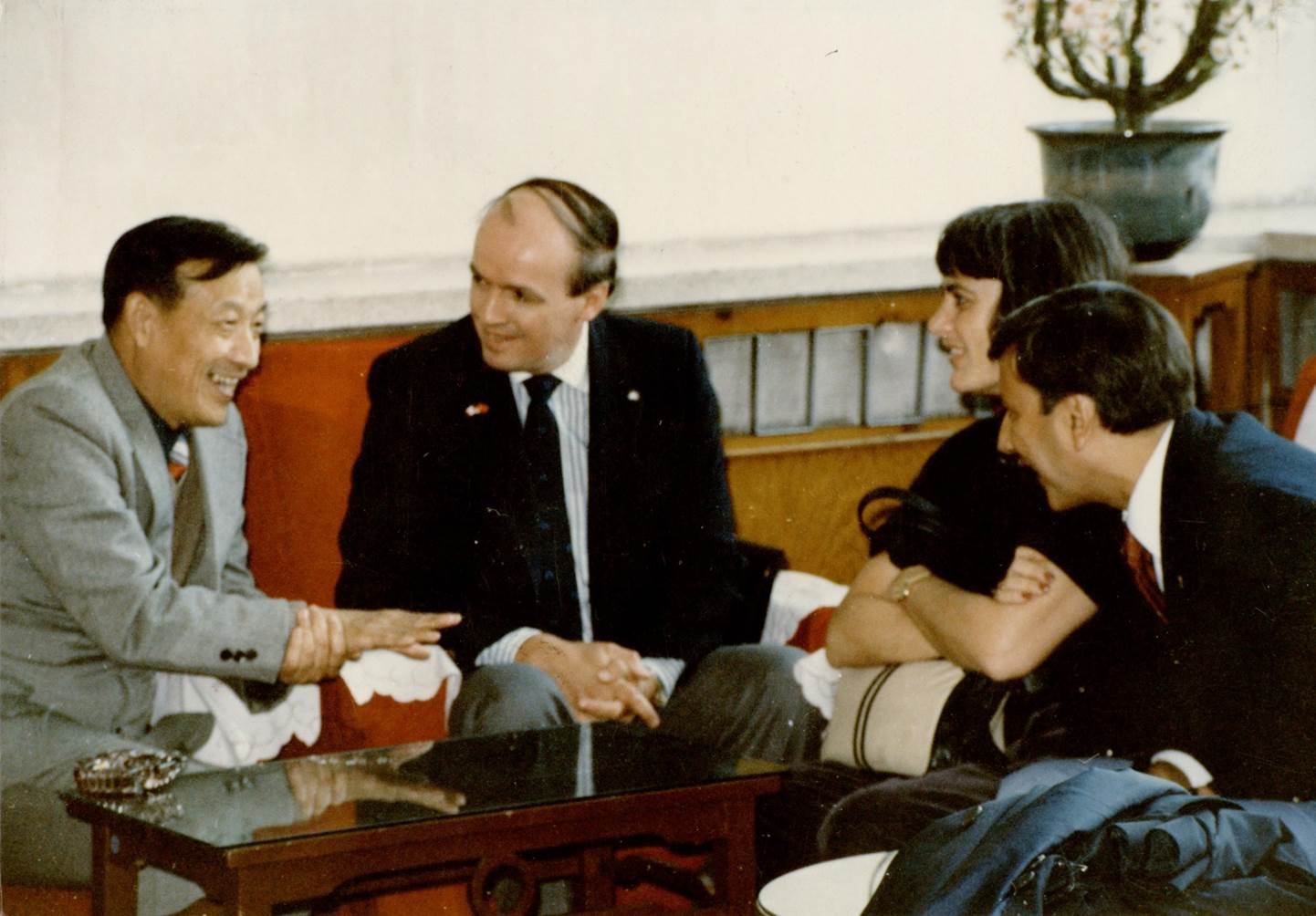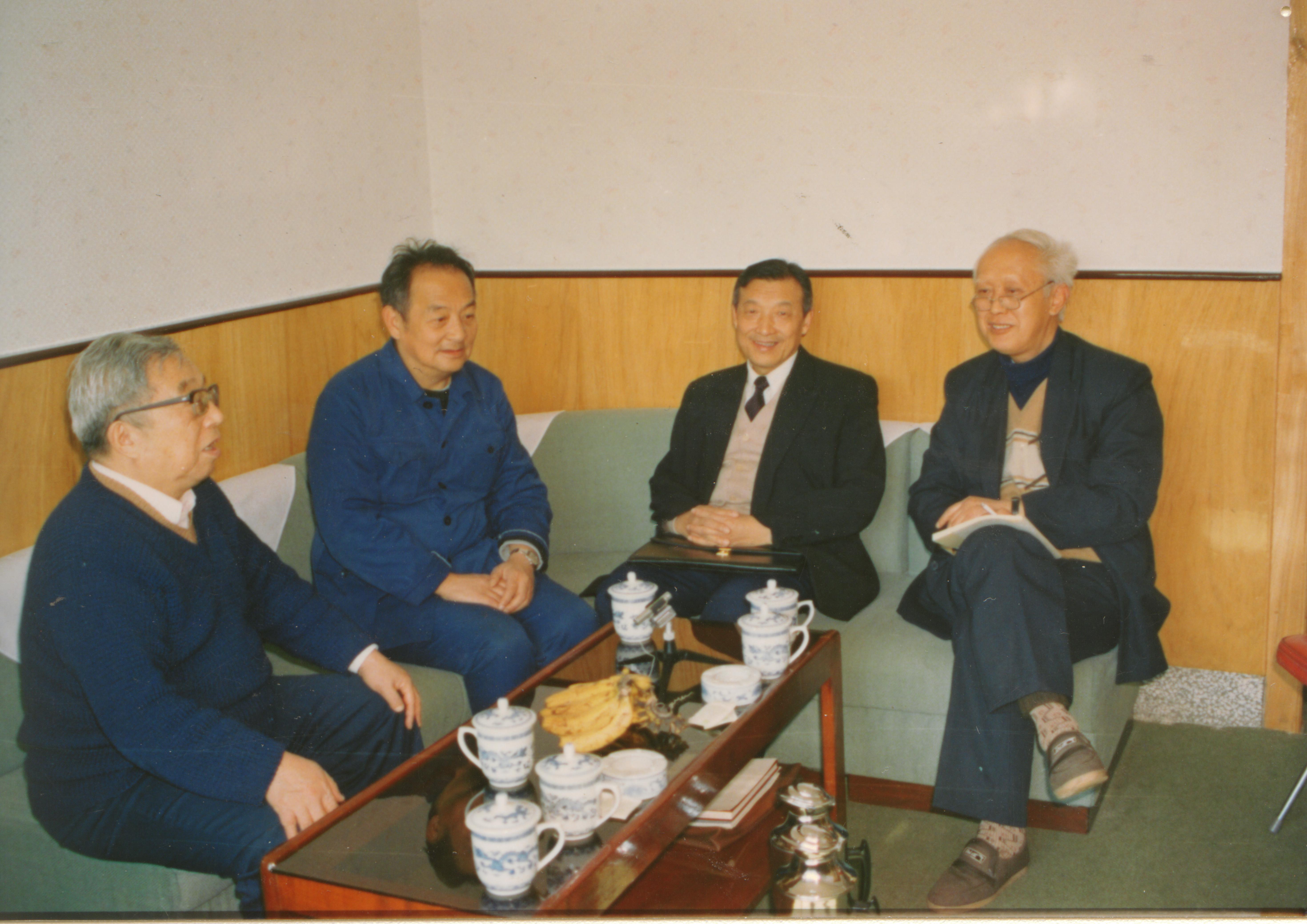 图5:沈家骢(右2)和唐敖庆教授(左1)在一起交流